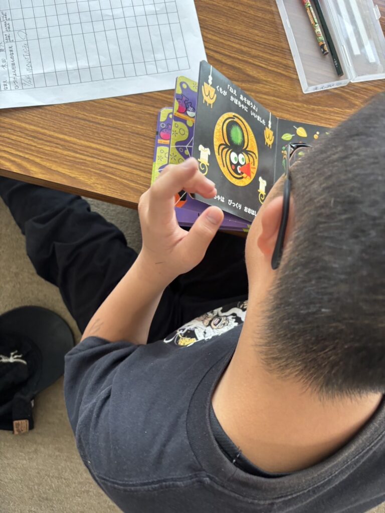 自分で選んだ絵本を自分で読んだり、スタッフに読んでもらったりとそれぞれで楽しみました。長編の物語はじっくりと、短編の絵本は声に出しながら読むお友だちが多かったです。