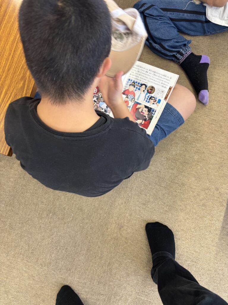 2025年9月26日 / 最終更新日時 : 2025年9月26日 blog ロンド岡谷 読書週間最終日です! 本日は読書週間最終日でした! この1週間色々な本に触れて色々な文字を読み本から色々な事を学ぶことができました! 今日のメンバーも文化祭があったのにも関わらずみんな集中して本を読むことができました!