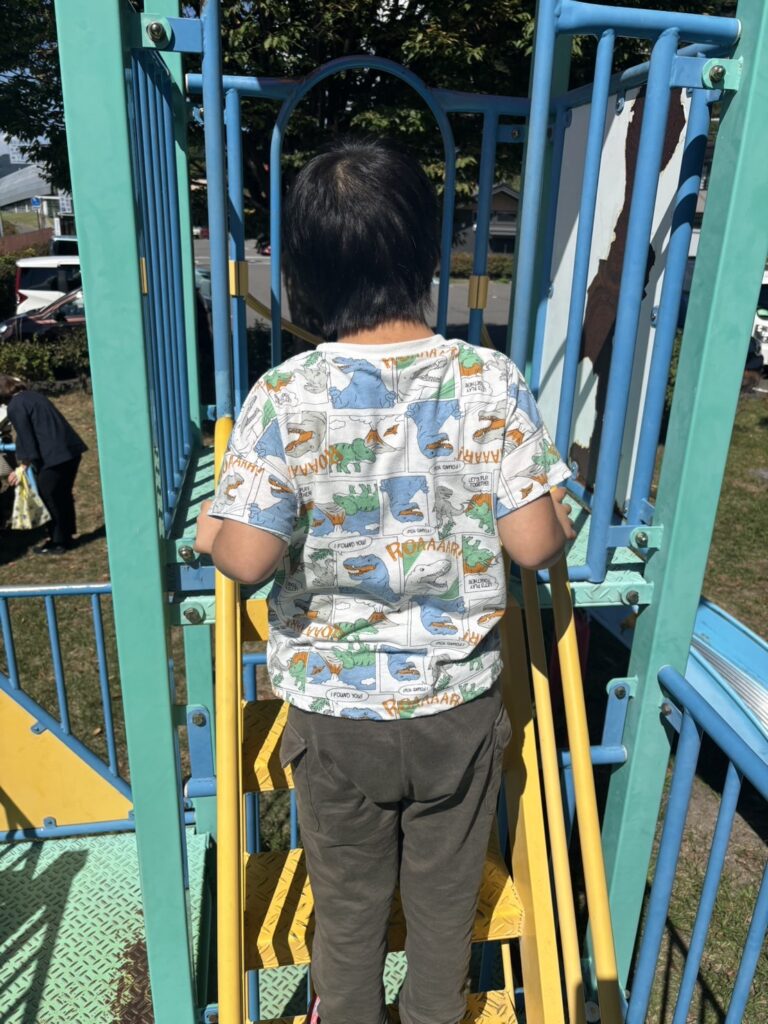 まずは公園の中を2周歩きその後は遊具で遊びました。他のお友だちに気を付けながら遊んだり、順番を譲ったりと優しい姿もたくさん見られました。