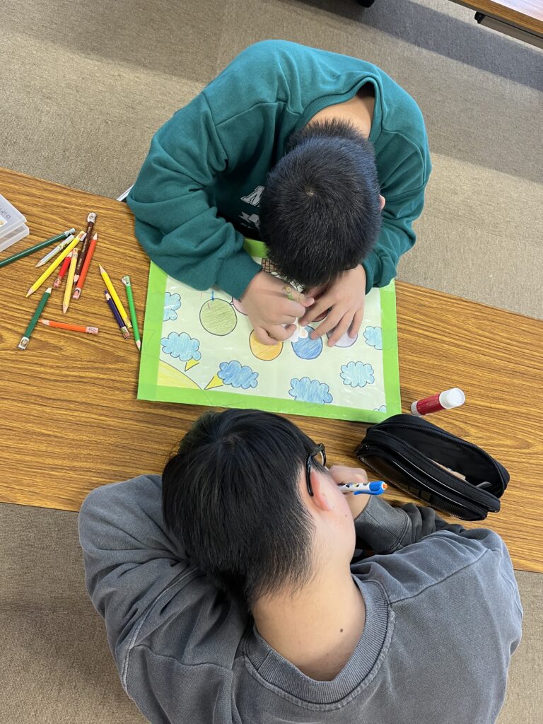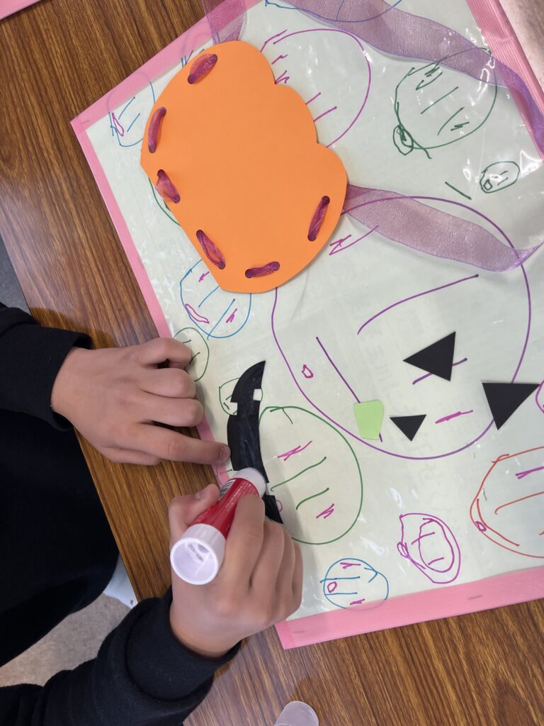 今週はハロウィンの製作を行なっています!かぼちゃのカバンを作っています!以前のイベントで頑張った紐通しの応用編として集中し取り組むことができました!作り終わった後はコウモリやお化け、カボチャの飾りを作りました!それぞれ可愛らしい飾りを作ることができました!