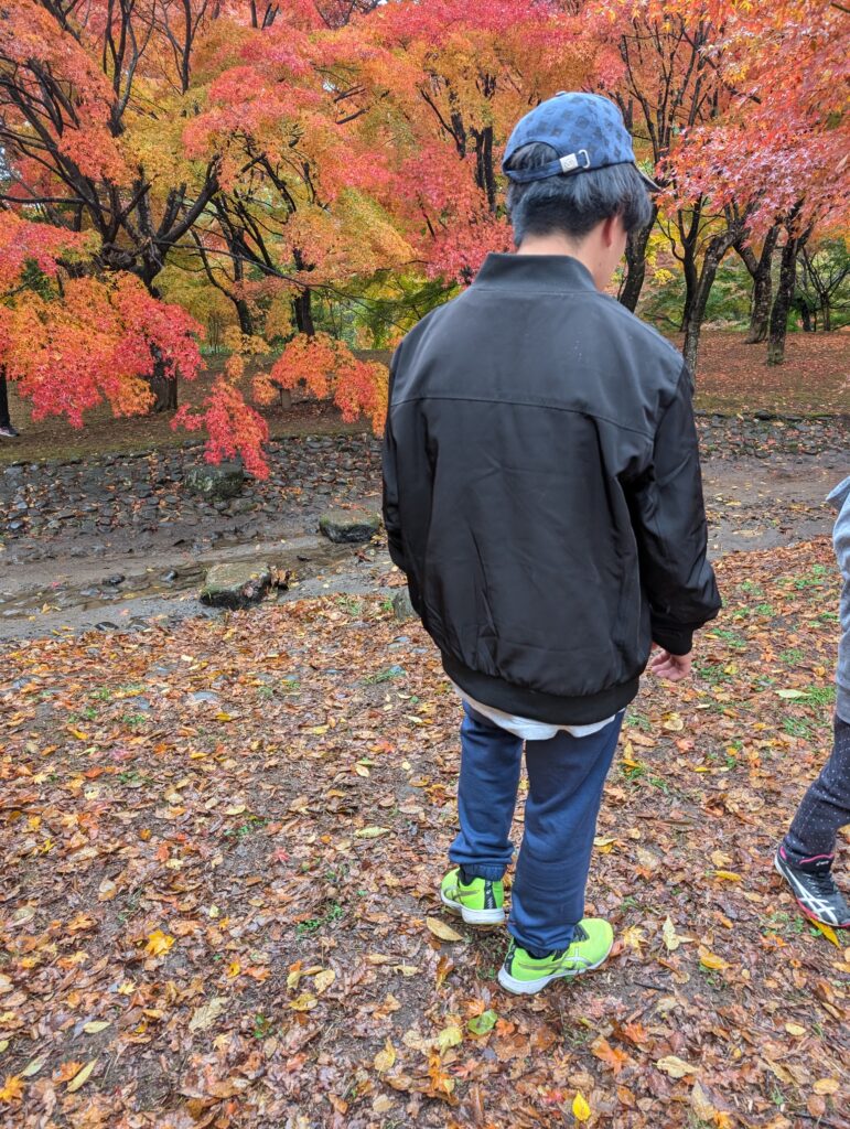 公園では、色とりどりのもみじの葉っぱを拾いながら、秋の自然をたっぷり感じることができました。
