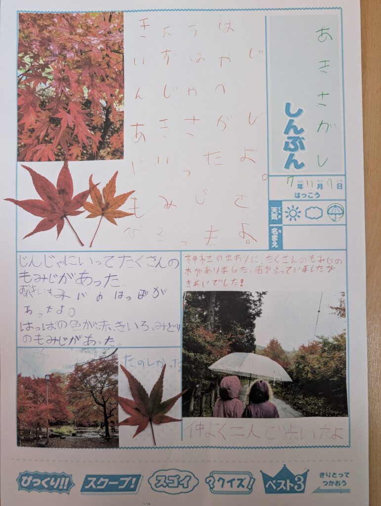 雨の日ならではの紅葉の美しさと、みんなで作った新聞の温かさに包まれた一日でした🍁