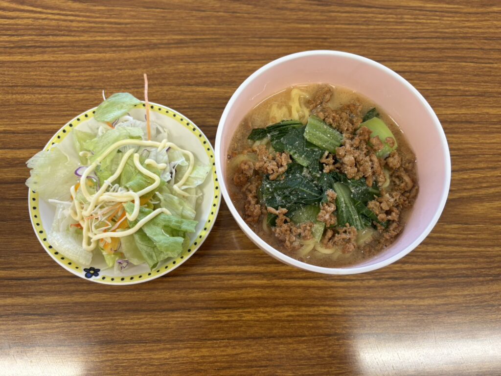 メニューは「辛くない担々麺」。子供たちも安心して食べられるように工夫しました。
