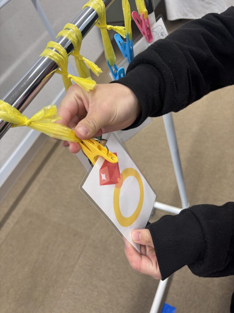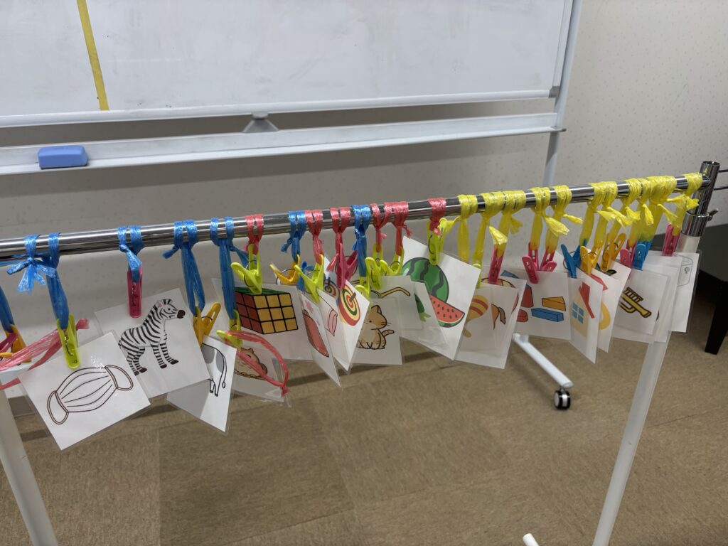 次はなんだろう?と考えたり、絵を探したり、とやる事はたくさんでしたがみんな頭をフル回転させて考え洗濯ばさみがいっぱいになるまでしりとりを繋げることが出来ました!