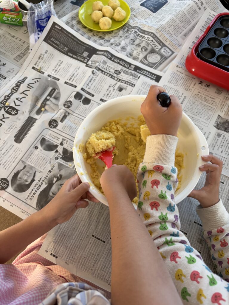 2025年11月29日 / 最終更新日時 : 2025年11月29日 blog ロンド岡谷 まるまるスイートポテト 本日のイベントはおやつ作りでスイートポテトを作りました さつまいもをレンジで柔らかくして他の材料をまぜ 丸めてたこ焼き機で焼きました 皆んなで協力しながら おいしいスイートポテトができました