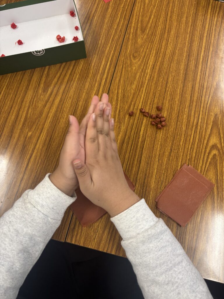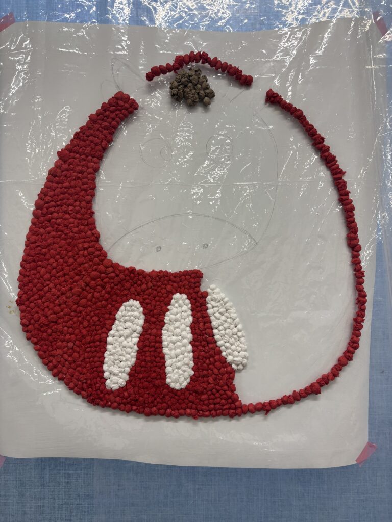 「2026」は完成したので今度は来年の干支「午」の絵を完成させるべくみんなで花紙をクルクル丸めています。