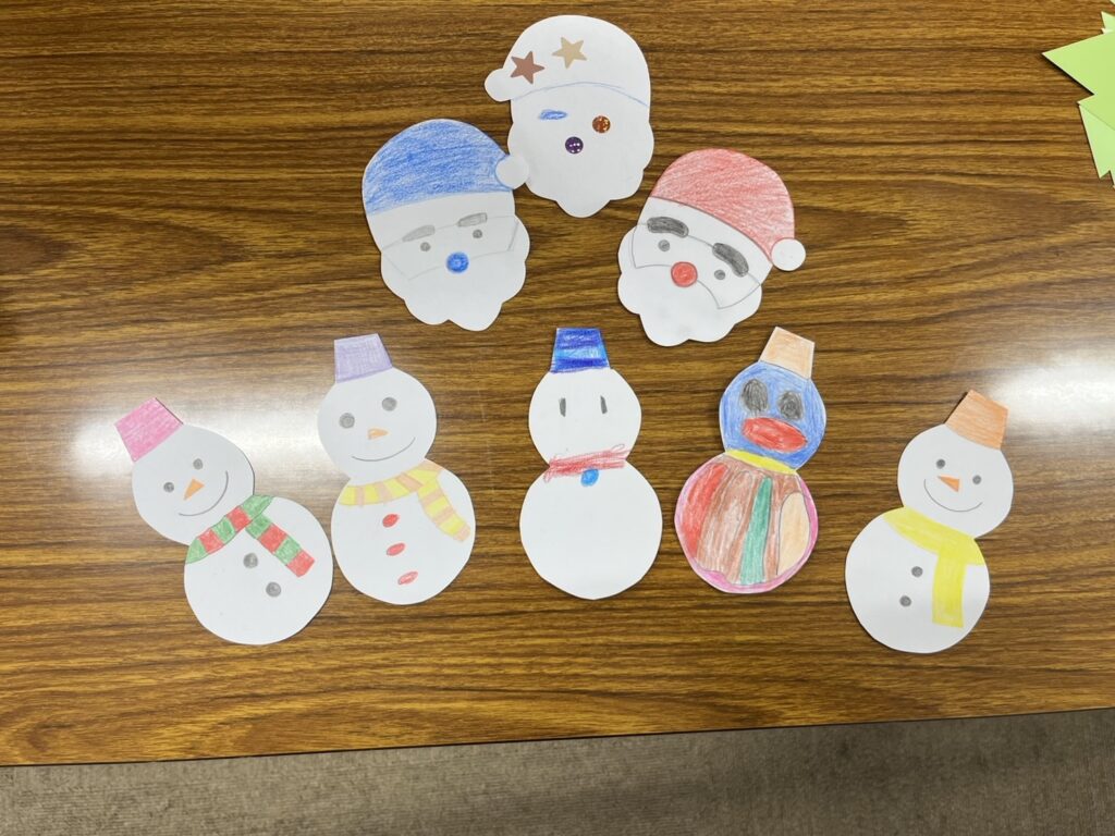 子どもたちとスタッフ作の雪だるまとサンタ⛄🎅🏻