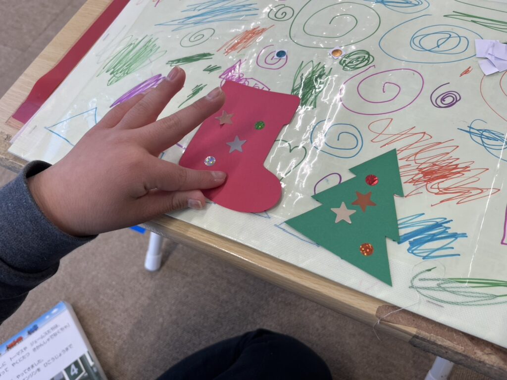 雪だるまやサンタ、ツリーなどみんなの個性溢れる飾りが出来てきました!スタッフも一緒に描いてみました!