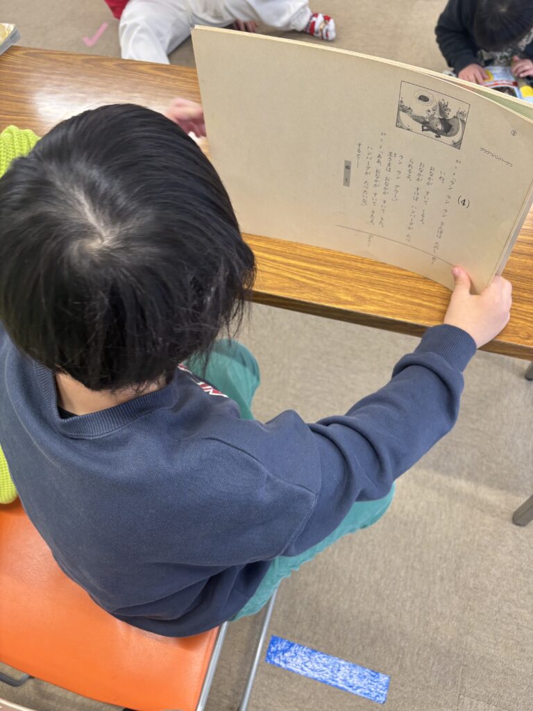今回は2つの紙芝居をお友だちに読んでもらいました。スタッフと一緒に読んだり、1人でスラスラ読めるお友だちもいました。