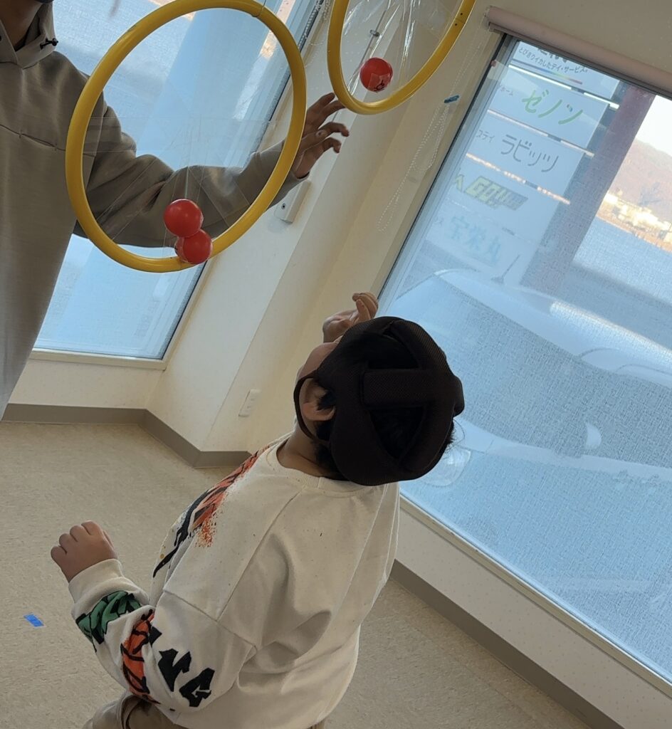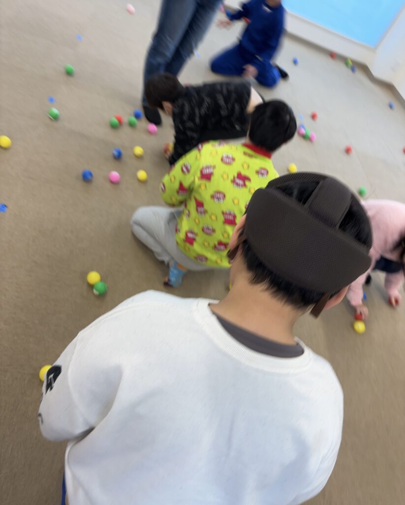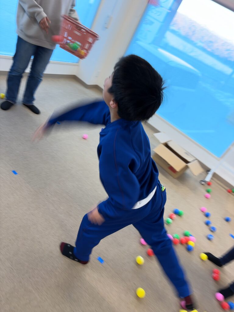 本日のイベントは今日が節分👹ということで、ボールを豆まきのように投げたり、カゴに入れたりするイベントです!!