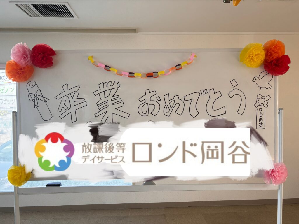 本日のイベントは卒業おめでとう会をしましたよ、今年はロンド卒業するお友達が5名、午前中はお部屋の飾り付け、
