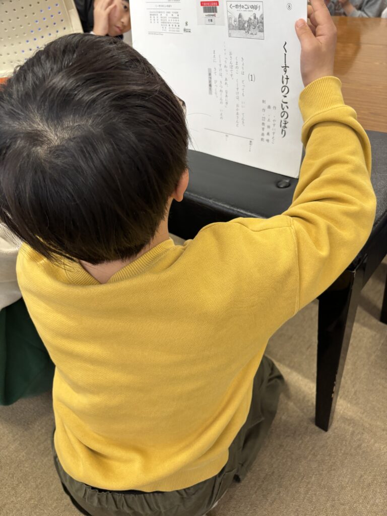 まずはスタッフが読むのを静かに聞きました。スタッフと一緒に絵本を持って読んだり、スタッフが読んでいる絵本を持つお手伝いをしたり。