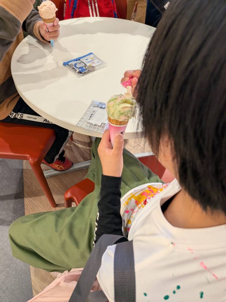 数あるフレーバーから、さくらのやつがいい、チョコレートがいいなど、好きなアイスを選ぶ姿はとても楽しそうでした!