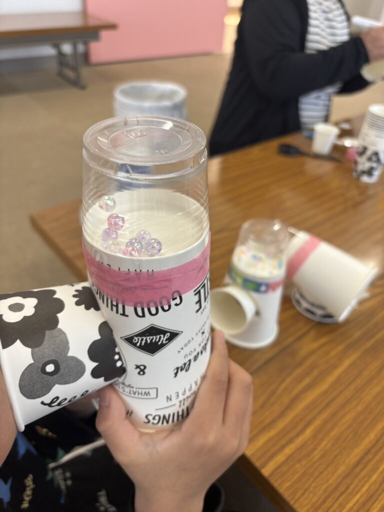 実験が盛り上がった流れで、「紙コップで他に何が作れるかな?」という話に。