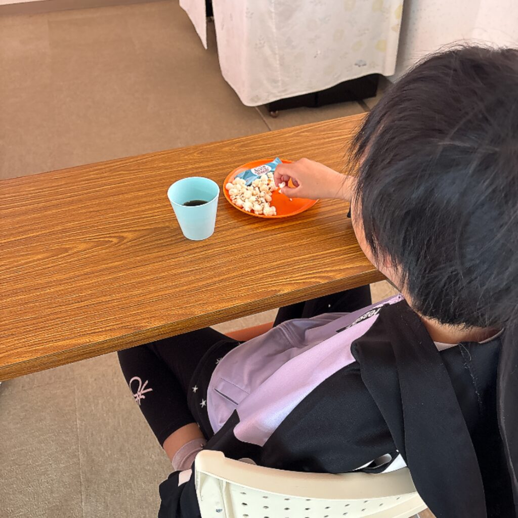 みんなお菓子をつまみながら集中して、時には思わず声を上げたりしながら、映画を見ていました!