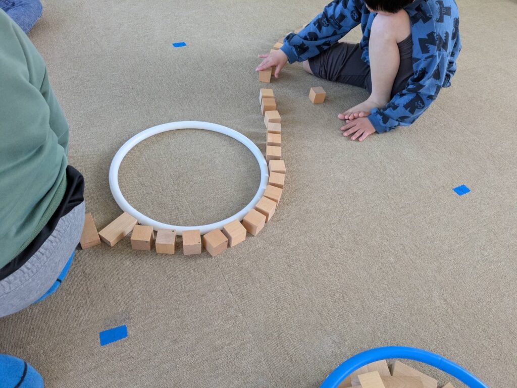 今日のお友達はSST教材を使って、お友達と話をして考えたり、積み木を円の中で高く積み上げてみたりスタッフと交互に数を数えながら並べてみたりと、自分のできる事や得意な事をもっと伸ばせしました。